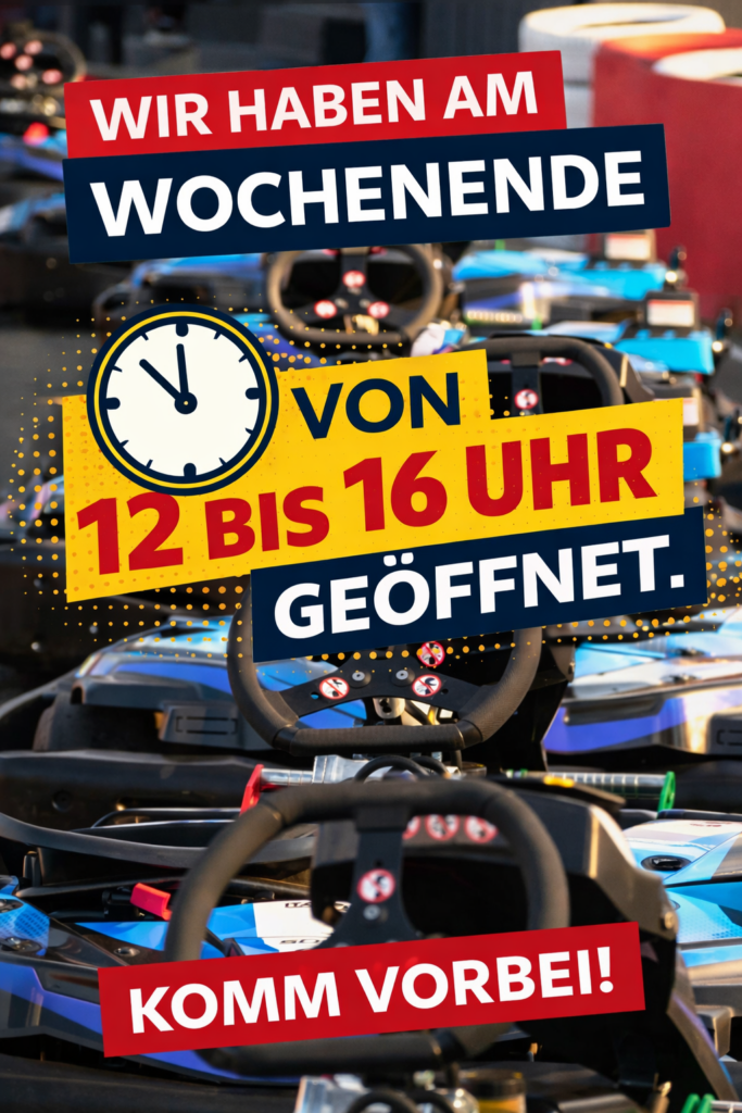 Das Wochenende verspricht wieder gutes Wetter, daher öffnen wir für euch. Besucht uns für eine Session oder ein Race. Deine Buchung kannst du auch einfach und bequem online vornehmen. Wir freuen uns auf euren Besuch.