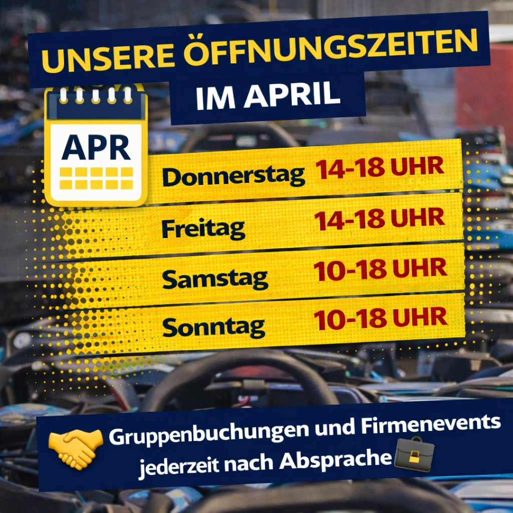 🚨🏁 NEUE ÖFFNUNGSZEITEN IM APRIL! 🏁🚨 Endlich wieder mehr Zeit für Action auf der Strecke!